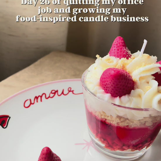 Indulge in the sweet charm of this Mini Shortcake Candle Collection. Hand-poured in the French Alps, these realistic dessert candles capture the delightful look of classic shortcakes with layers of cream and fresh berries.