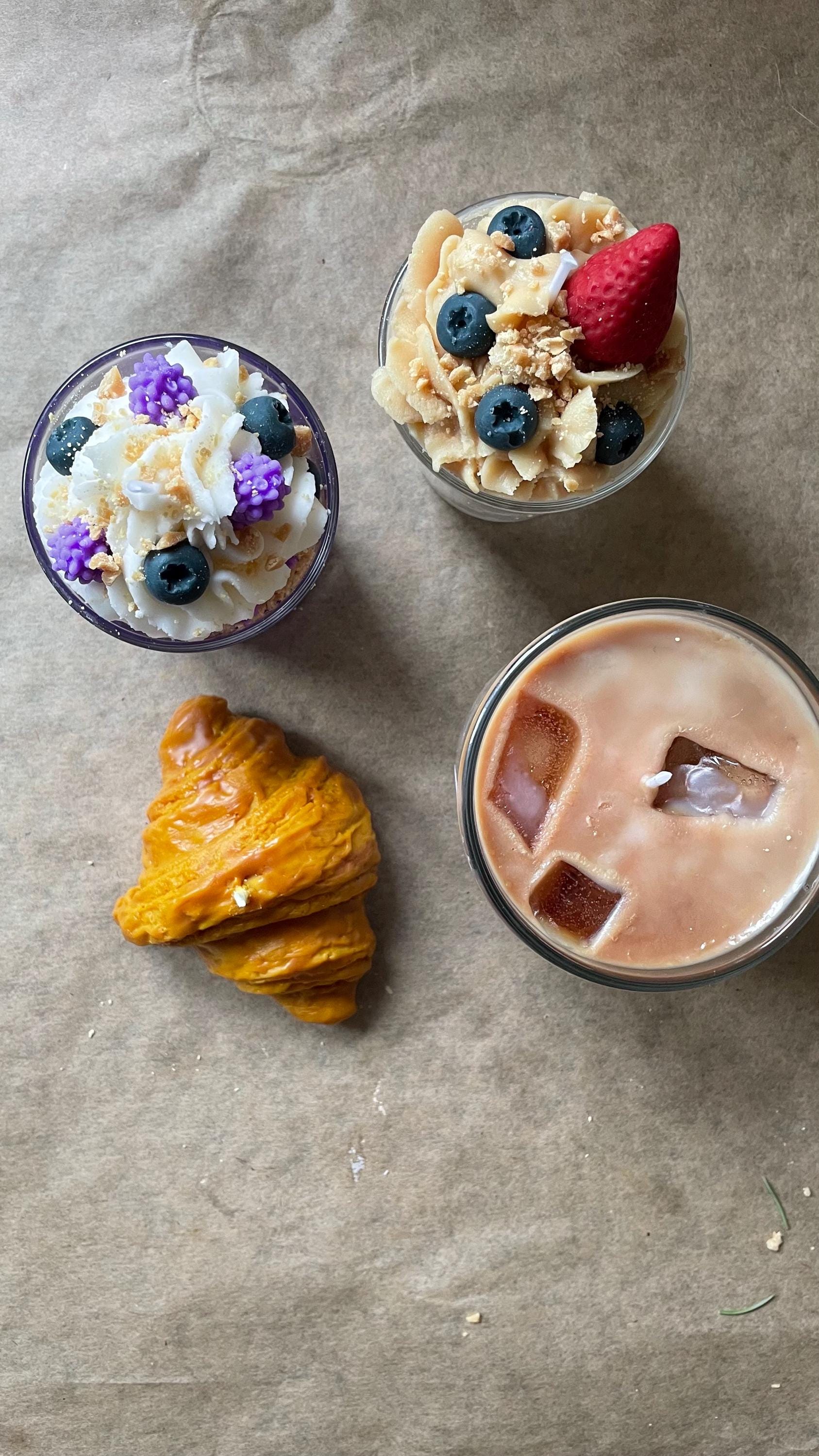 Create your own French café candle set! Choose from realistic Iced Coffee, Shortcake, and Croissant candles to build the perfect combination for yourself or as a gift. Mix and match individual candles or select the full 4-candle set for the complete café experience.
