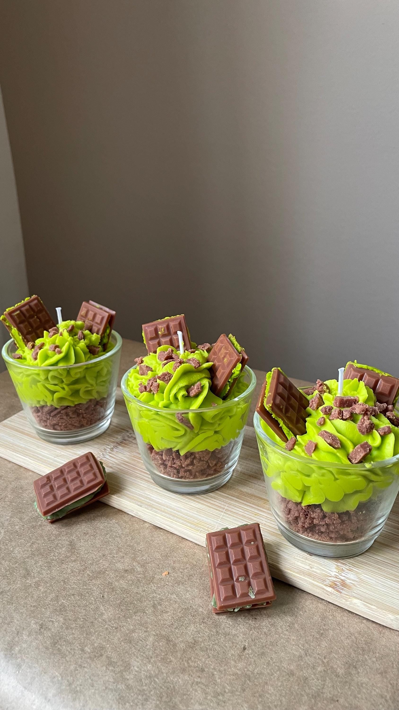 Indulge in the rich, decadent aroma of our Dubai Chocolate Pistachio Dessert Candle. This handcrafted candle captures the luxurious essence of viral Dubai chocolate with its signature pistachio filling, bringing the warmth of a gourmet dessert into your home without the calories.