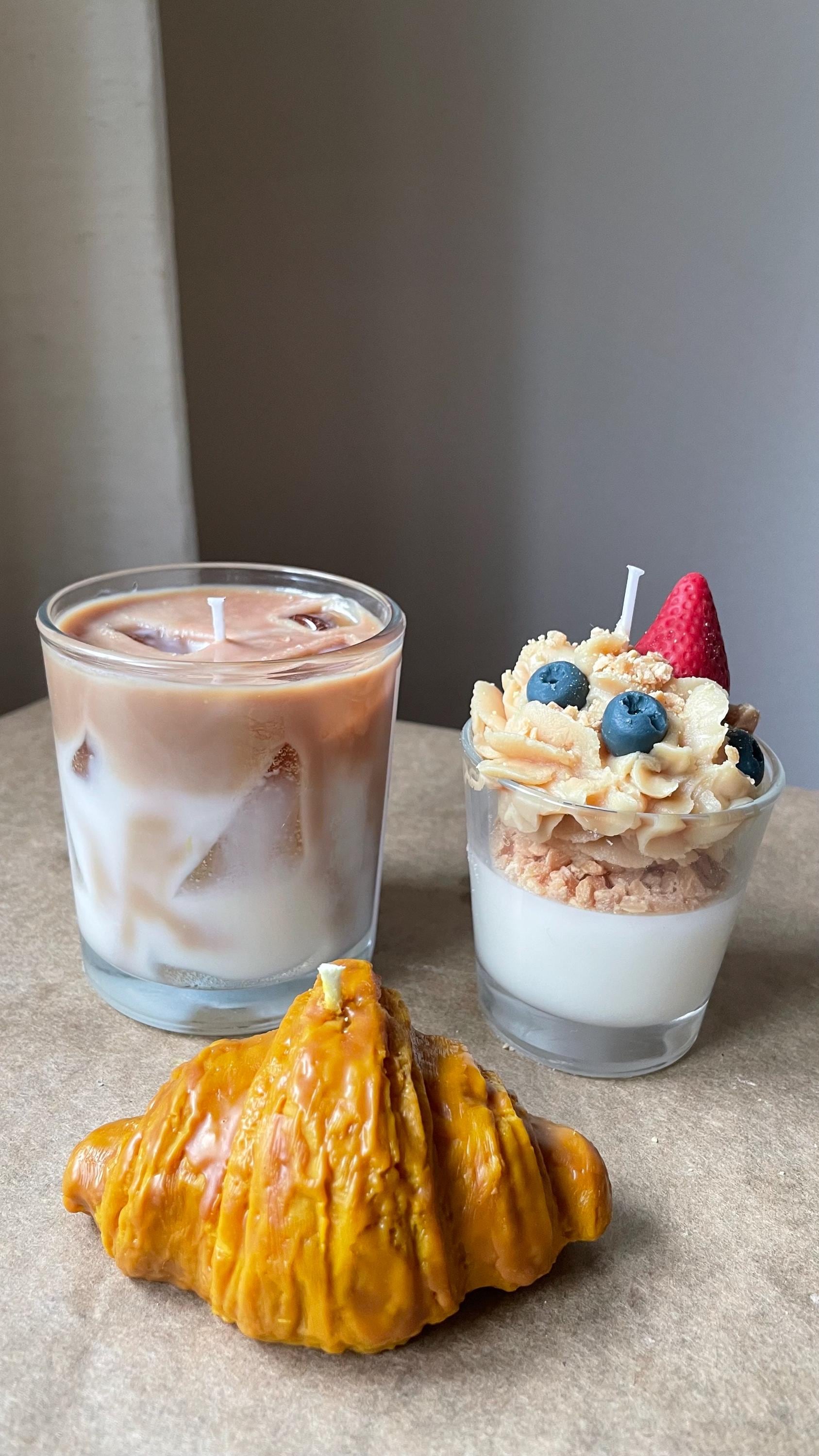 Indulge in the comforting aromas of a French café gourmand with this Set of 3 Scented Food Candles. Each candle is hand-poured in France using natural soy wax and captures the delicious scents of freshly brewed coffee, sweet berries shortcake, and buttery croissants.